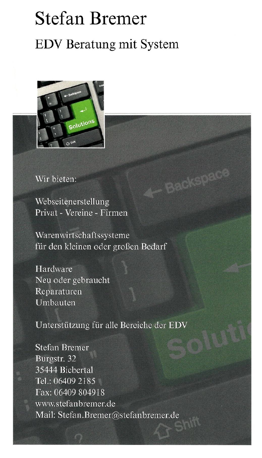 ist Ihr zuverlässiger Partner in 35444 Biebertal und Umgebung, wenn es um professionelle und maßgeschneiderte IT-Lösungen geht. Schluss mit IT-Frust und Unsicherheiten! Wir sorgen dafür, dass Ihre Informationstechnologie reibungslos funktioniert, damit Sie sich voll und ganz auf Ihr Kerngeschäft konzentrieren können.